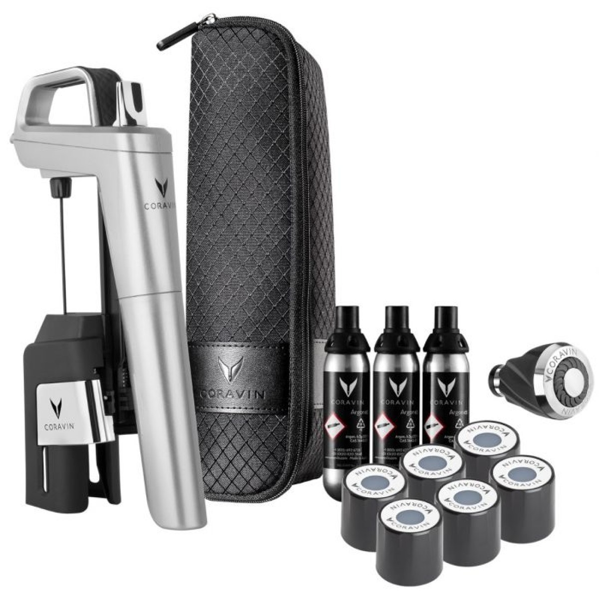 - Drei Coravin Kapseln (für bis zu 45 Gläser Wein)