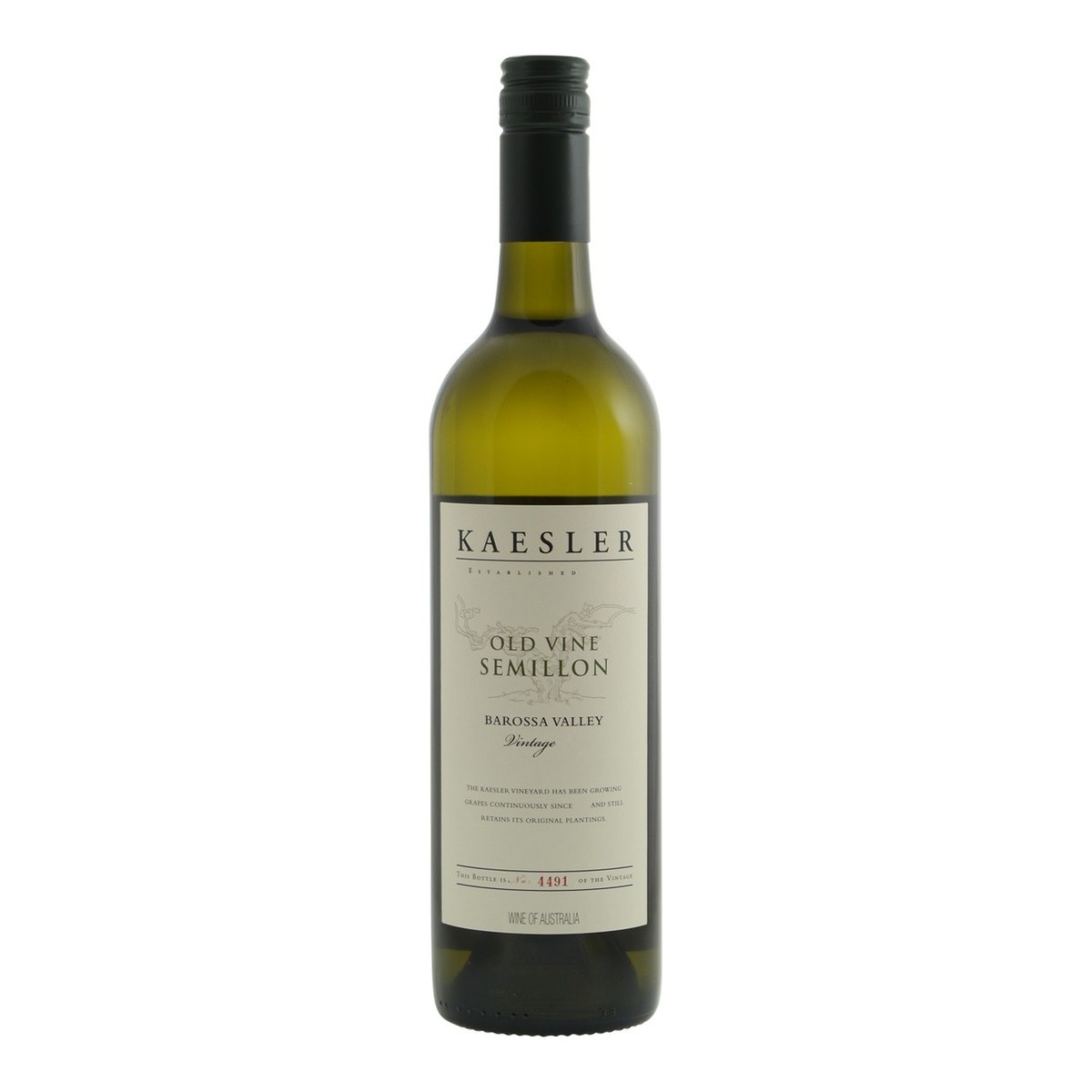 Die Weinberge von Kaesler befinden sich rund um das Dorf Nuriootpa im Barossa Valley und wurden seit 1893 bepflanzt. Nach einer erfolgreichen Karriere in Frankreich und Südafrika kehrte der Winzer Reid Bosward 1999 ins Barossa zurück, um gemeinsam mit Partnern das Weingut Kaesler zu übernehmen. Der Hauptanreiz für diese Übernahme war die Möglichkeit, mit einer außergewöhnlich großen Anzahl sehr alter Weinberge zu arbeiten. Alle Weinberge werden nach einem nachhaltigen Weinbauprogramm bewirtschaftet. Die alten Reben liefern kraftvolle und konzentrierte Weine, die für die Region charakteristisch sind. Bemerkenswert ist, dass der Stil der Weine im Laufe der Jahre immer feiner wird. Dieses Gleichgewicht aus Kraft, Konzentration, Frische und Eleganz spiegelt sich deutlich in den Weinen wider.